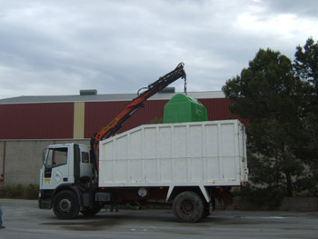La recogida mediante contenedores tipo iglú y vehículo con grúa es el sistema más empleado para realizar la recogida de residuos selectivamente. Su ventaja más importante es que permite llevar cajas de gran capacidad, lo que unido al uso de contenedores de gran volumen, facilita frecuencias de recogidas más espaciadas y una buena calidad en los subproductos recogidos.