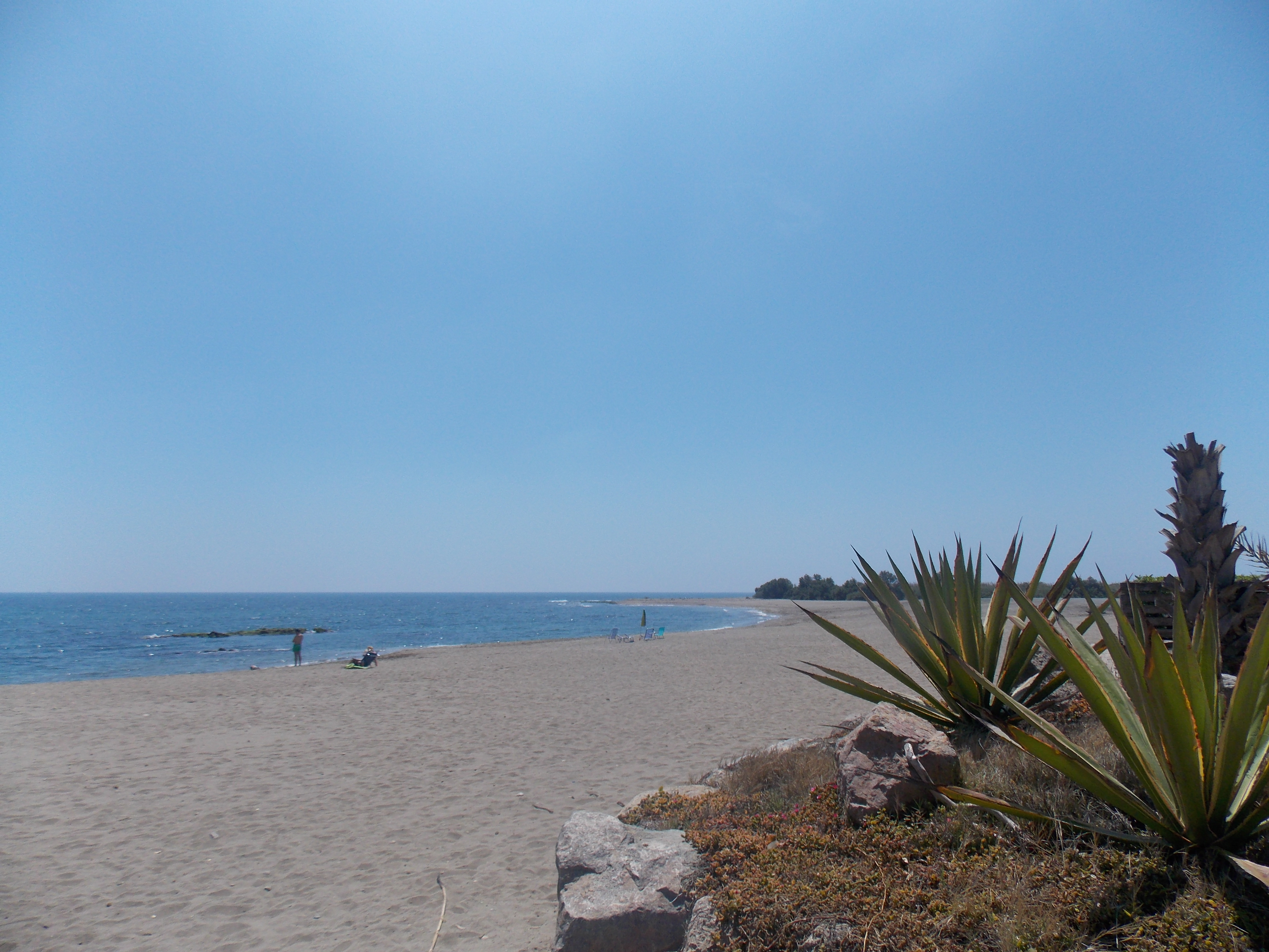 En el entorno del núcleo urbano del Pozo del Esparto, junto al paseo marítimo, se encuentra esta playa inmensa de casi 2 km de extensión, formada por una mezcla de arena fina y grava.